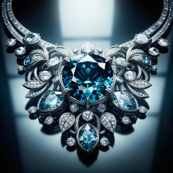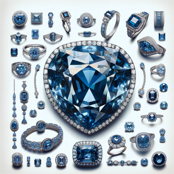 Collage mostrando el Diamante Hope original junto a la colección de Laura, enfatizando la influencia y los elementos de diseño compartidos entre ellos.
