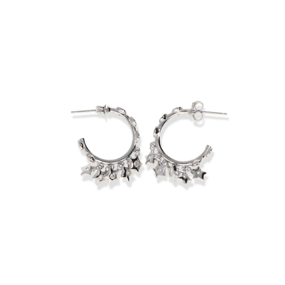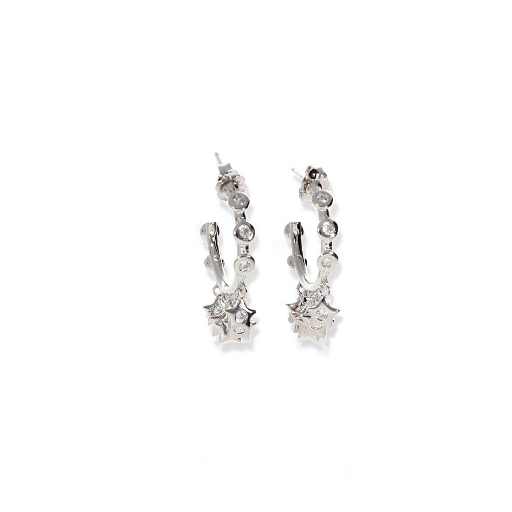 Pendientes plata de ley 925 semiaro con circonita con colgantes de estrella de 18mm de diámetro cierre a presión.