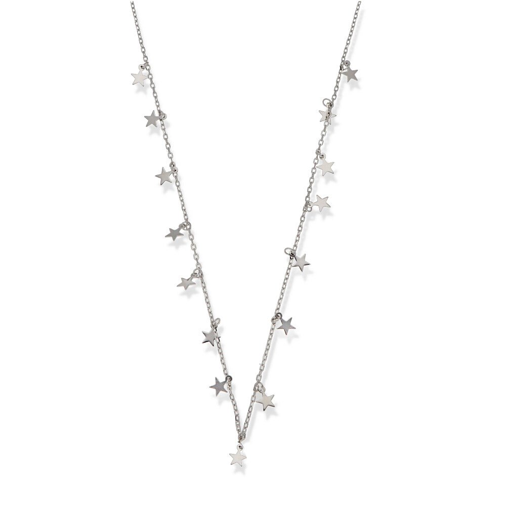 Gargantilla plata de ley 925 con colgantes de estrellas de 45cm de largo con cierre de reasa.