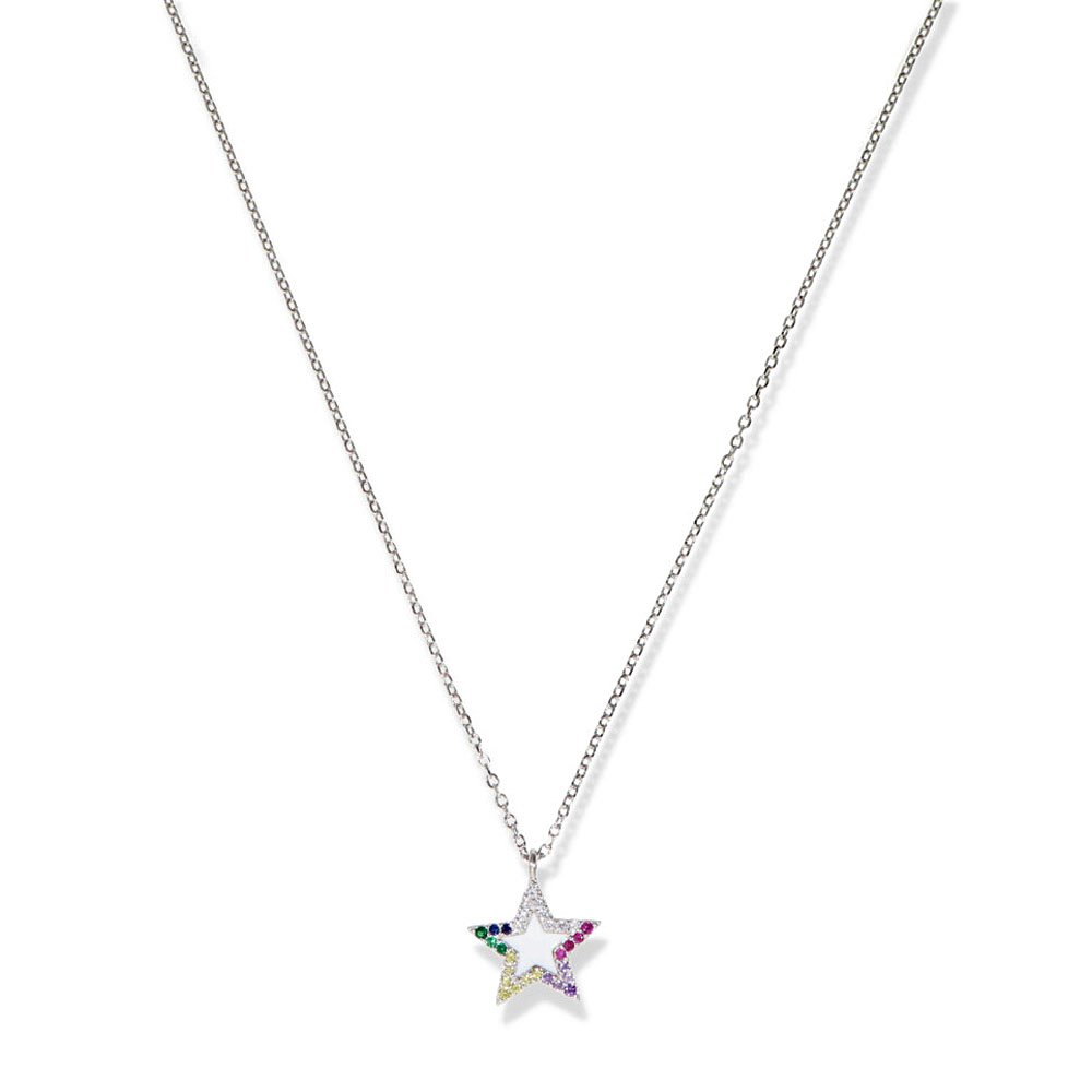 Gargantilla mujer plata de ley 925 con circonita colores 45cm de largo cierre reasa.