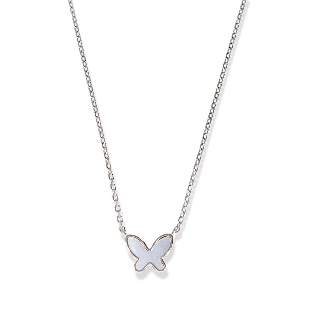 Gargantilla plata de ley 925 de nácar con forma de mariposa con cierre de reasa.