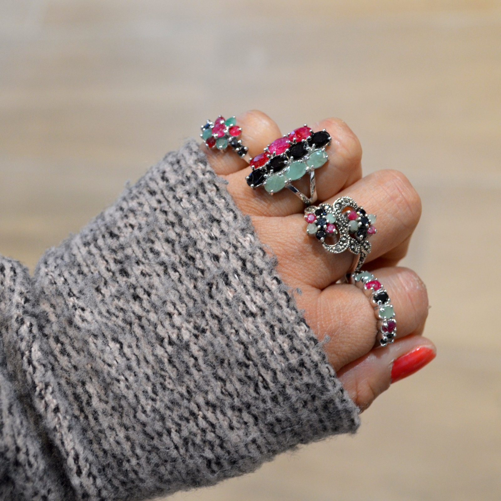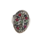 Idea regalo. Anillo piedra preciosa (esmeralda, rubí y zafiro) de plata de ley 925