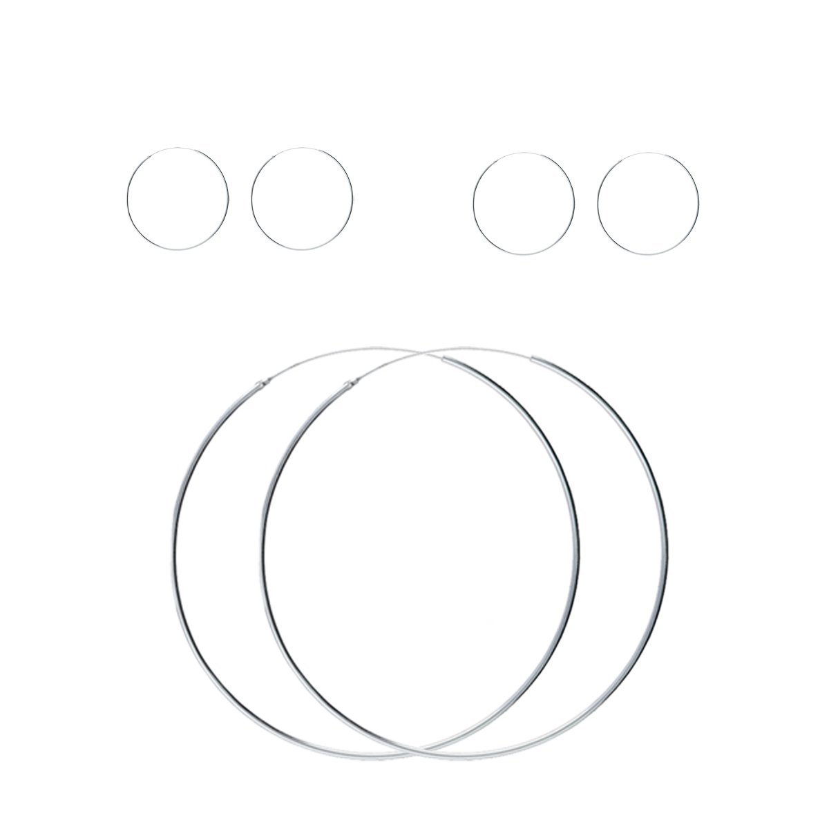 Conjunto de plata de ley 925 de aro liso dos de 1,2x10mm y uno de 1,2x40mm con cierre africano. Aros lisos
