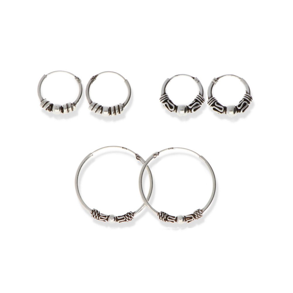 Conjunto de plata de ley 925 de aro balines dos de 1,2x14mm y uno de 1,2x25mm con cierre africano.