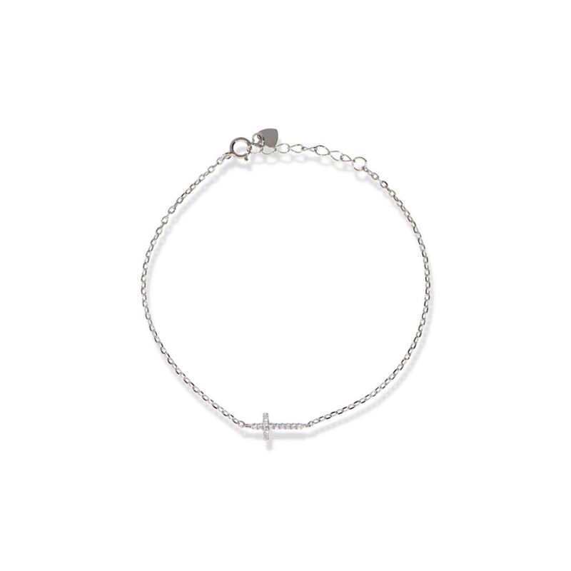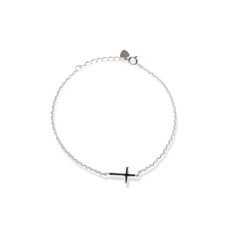 Pulsera plata de ley 925 doble con una cruz y un corazón de 16+4cm de largo con cierre mosquetón.