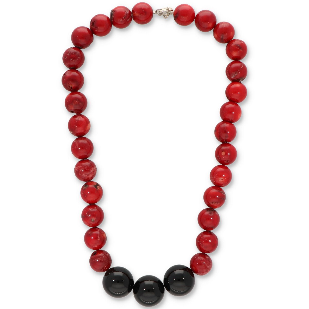 Collar de coral y ónix de 48cm de largo con cierre mosquetón de plata de ley 925.