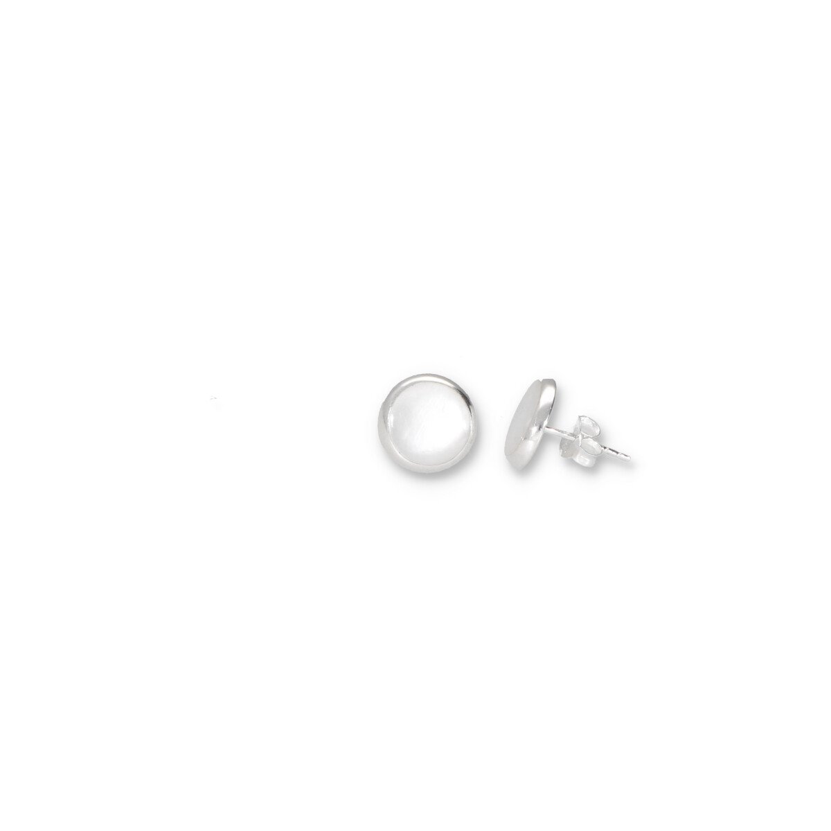 Pendientes mini de plata con piedra nácar. Diámetro de 12mm. Joya de plata925 con certificación.