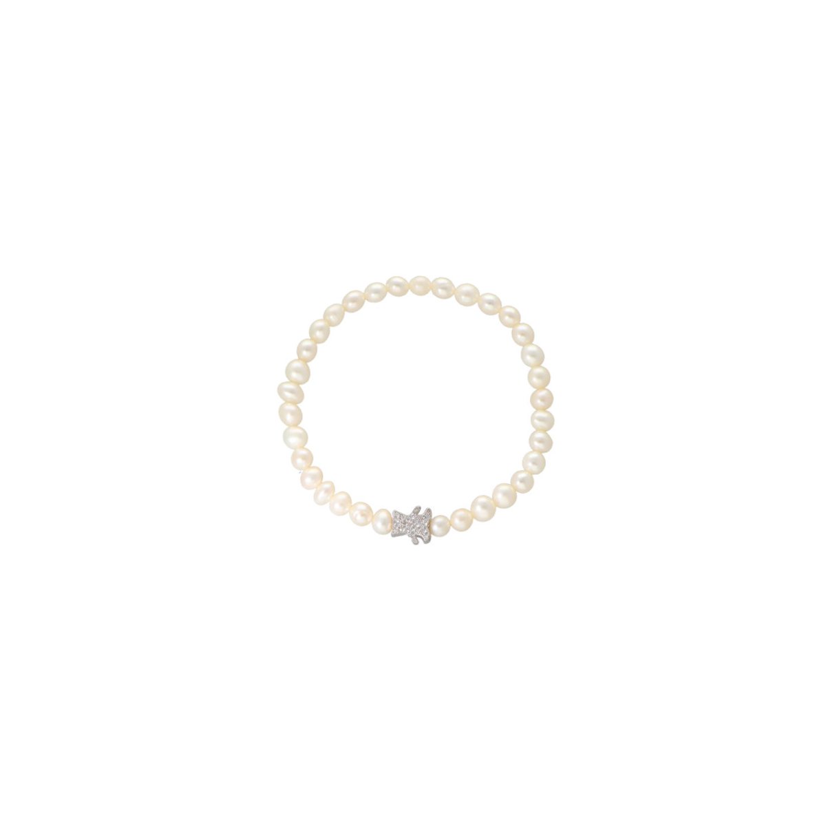 Pulsera de perlas naturales elástica de 5mm de diámetro y entrepieza en forma de osito de plata de ley 925 con circonitas de 18cm .
