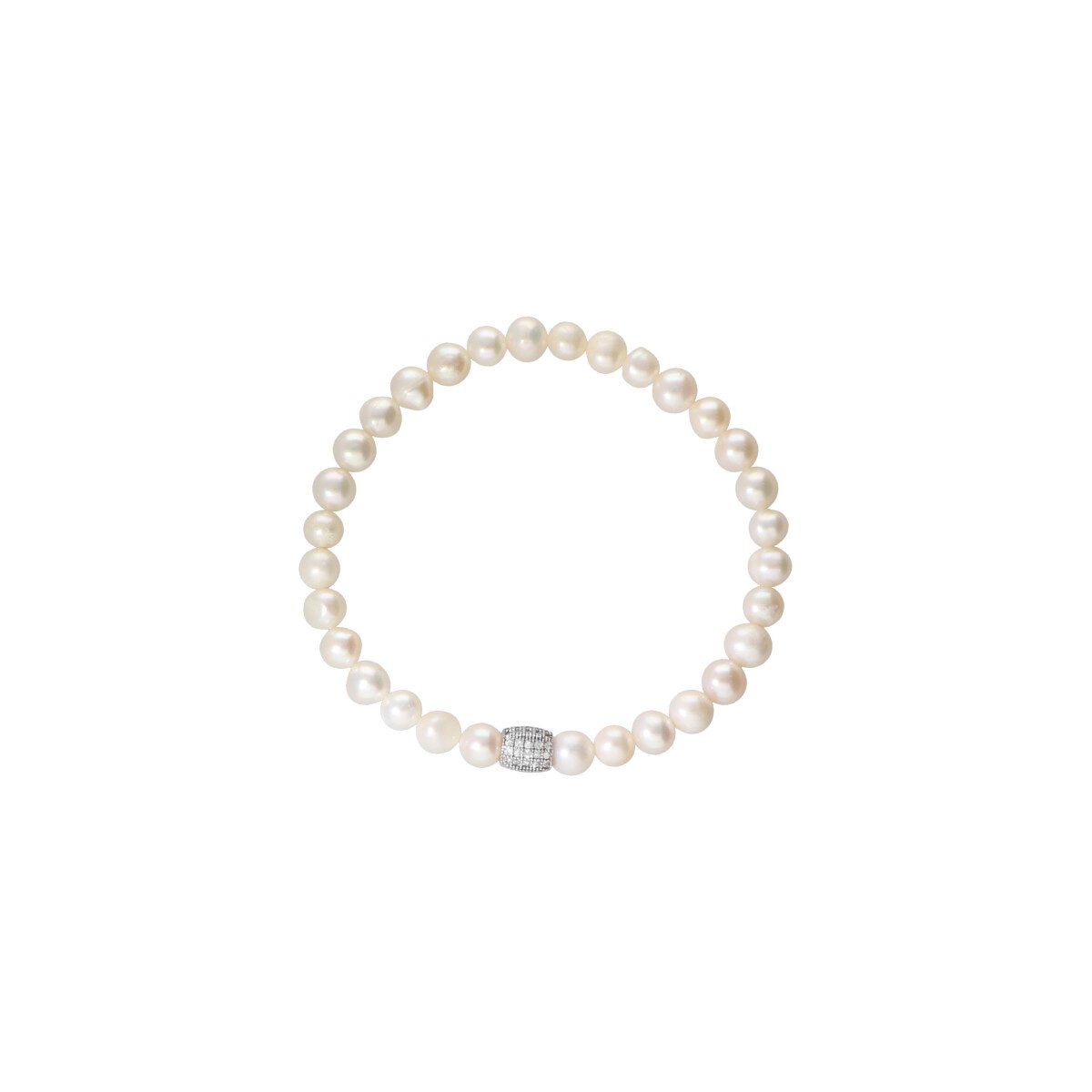 Pulsera de perlas de 5mm con un cilindro plateado de 8mm.