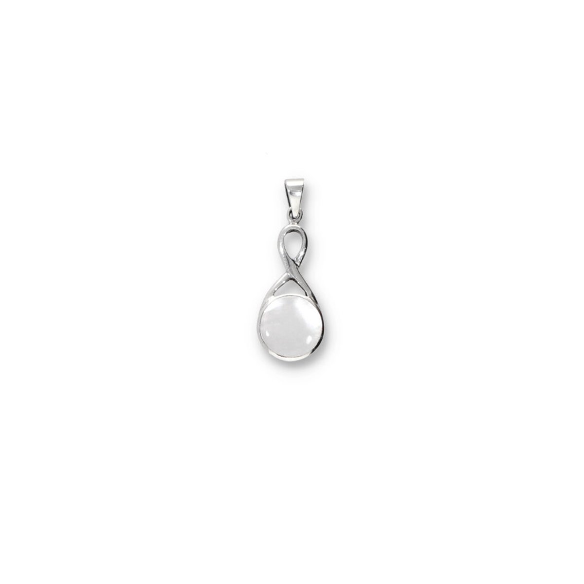 Colgante de nácar plata de ley 925 con un lazo en el enganche. 21mm.