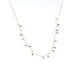 Este collar es una pieza elegante y versátil, perfecta para cualquier ocasión, cuenta con deslumbrantes cristales de colores que añade un toque de encanto a cualquier atuendo. La cadena ajustable permite un ajuste personalizado, asegurando que se adapte perfectamente.