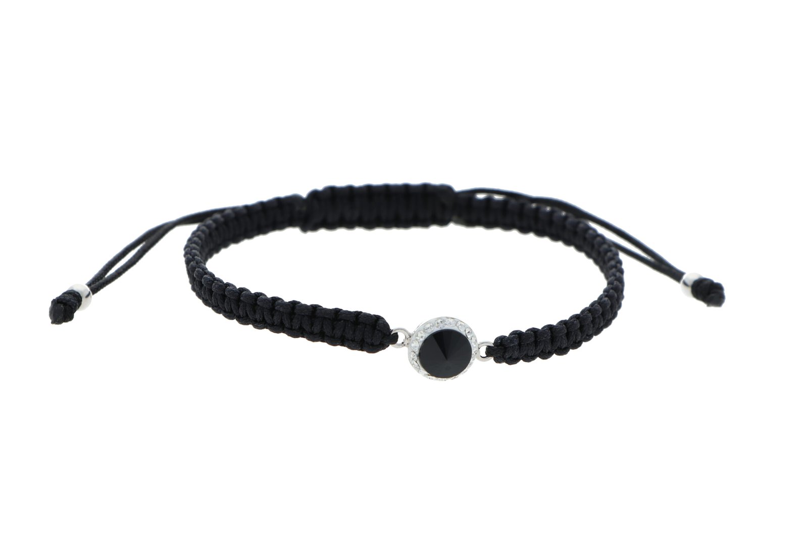 Descubre la magia de esta pulsera de macramé en negro, acentuada por una llamativa piedra negra en su centro. El cordón negro aporta un toque de elegancia, y en los extremos, dos pequeñas cuentas complementan el diseño. La piedra negra, de forma redonda, está exquisitamente engastada en un bisel metálico plateado que realza su belleza. Esta pieza de joyería es sencilla y sofisticada, perfecta para destacar tu estilo único.