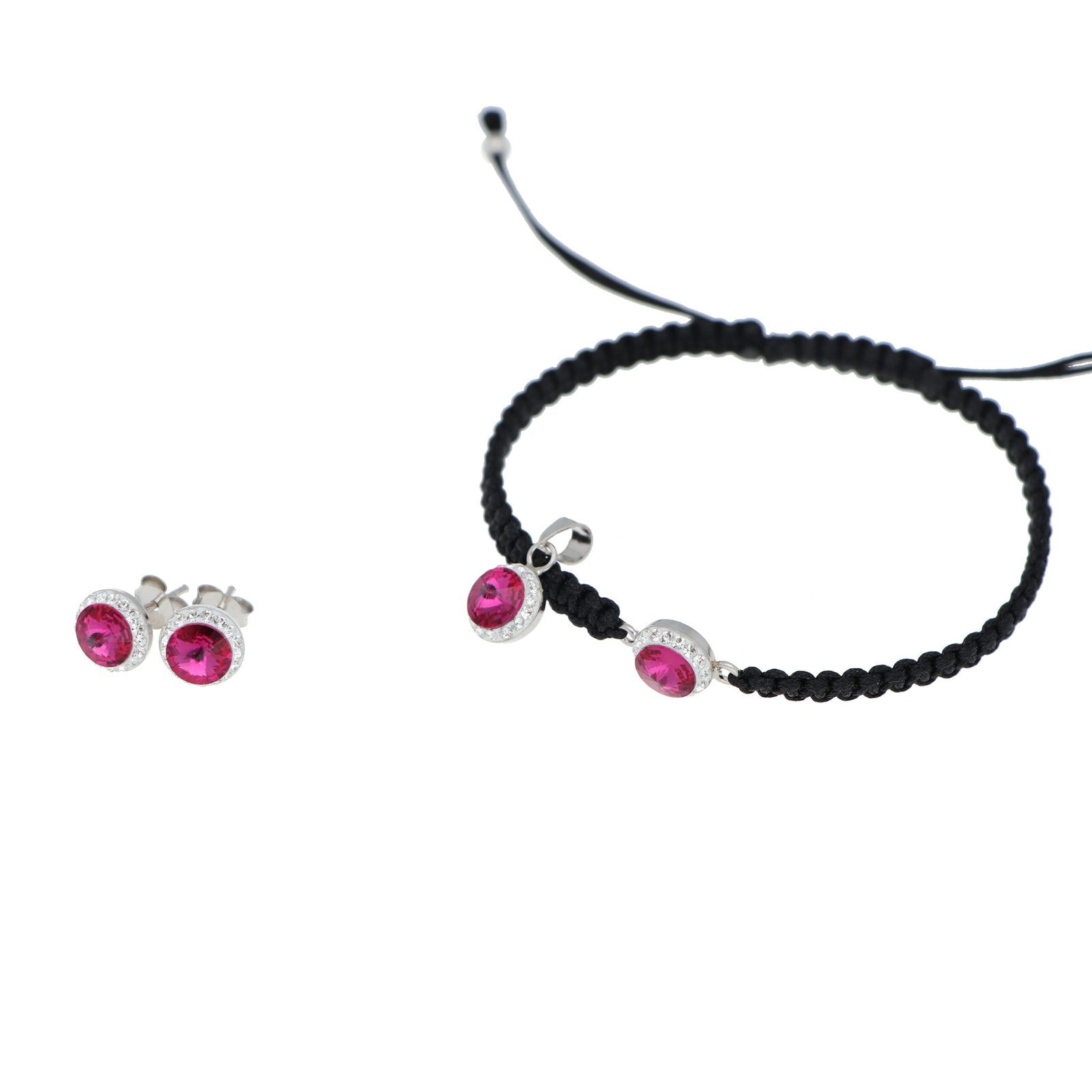 Conjunto Swarovski en vibrante fucsia, con pulsera texturizada, pendientes radiantes y colgante audaz.