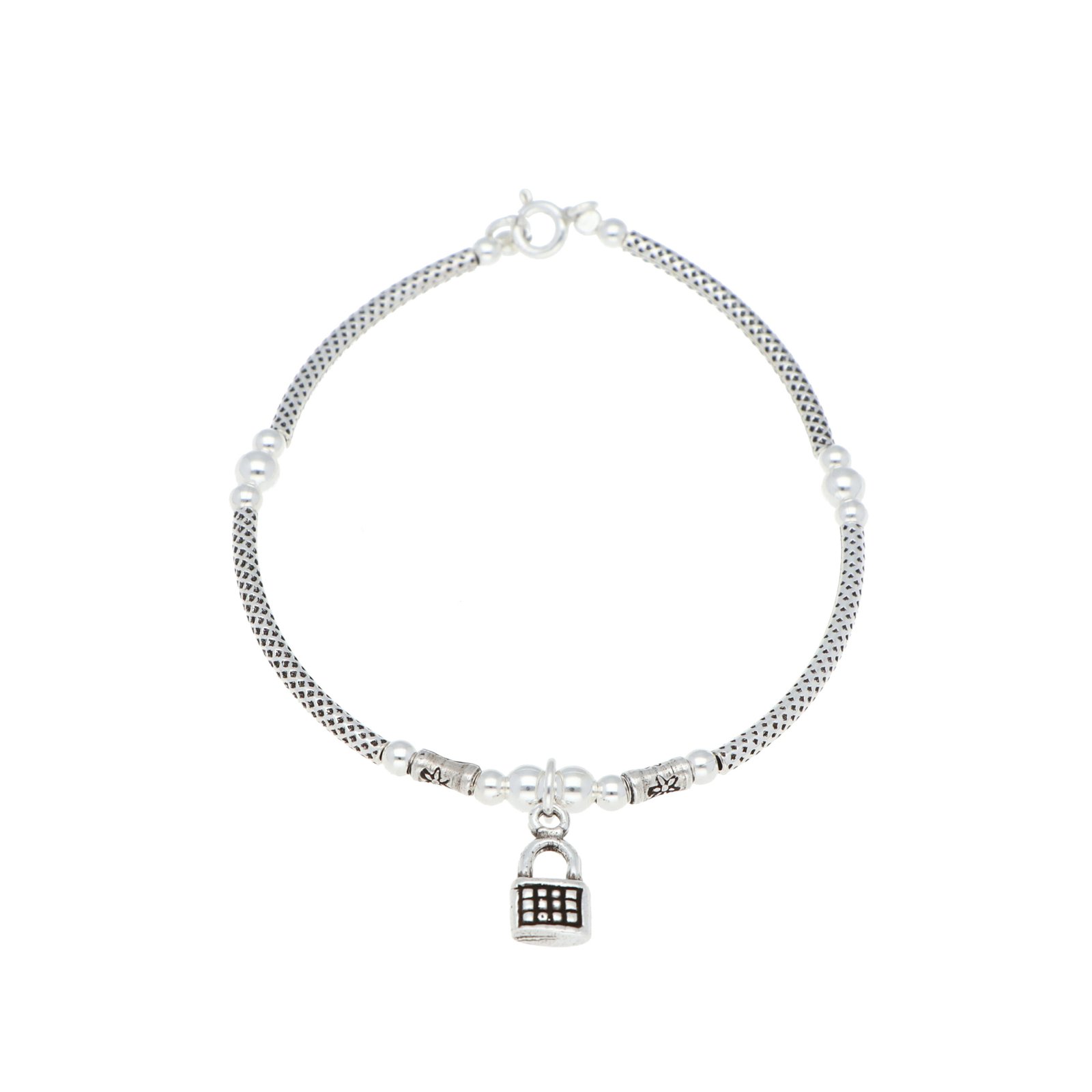 Pulsera Bali de Plata de Ley con Colgante de Candado