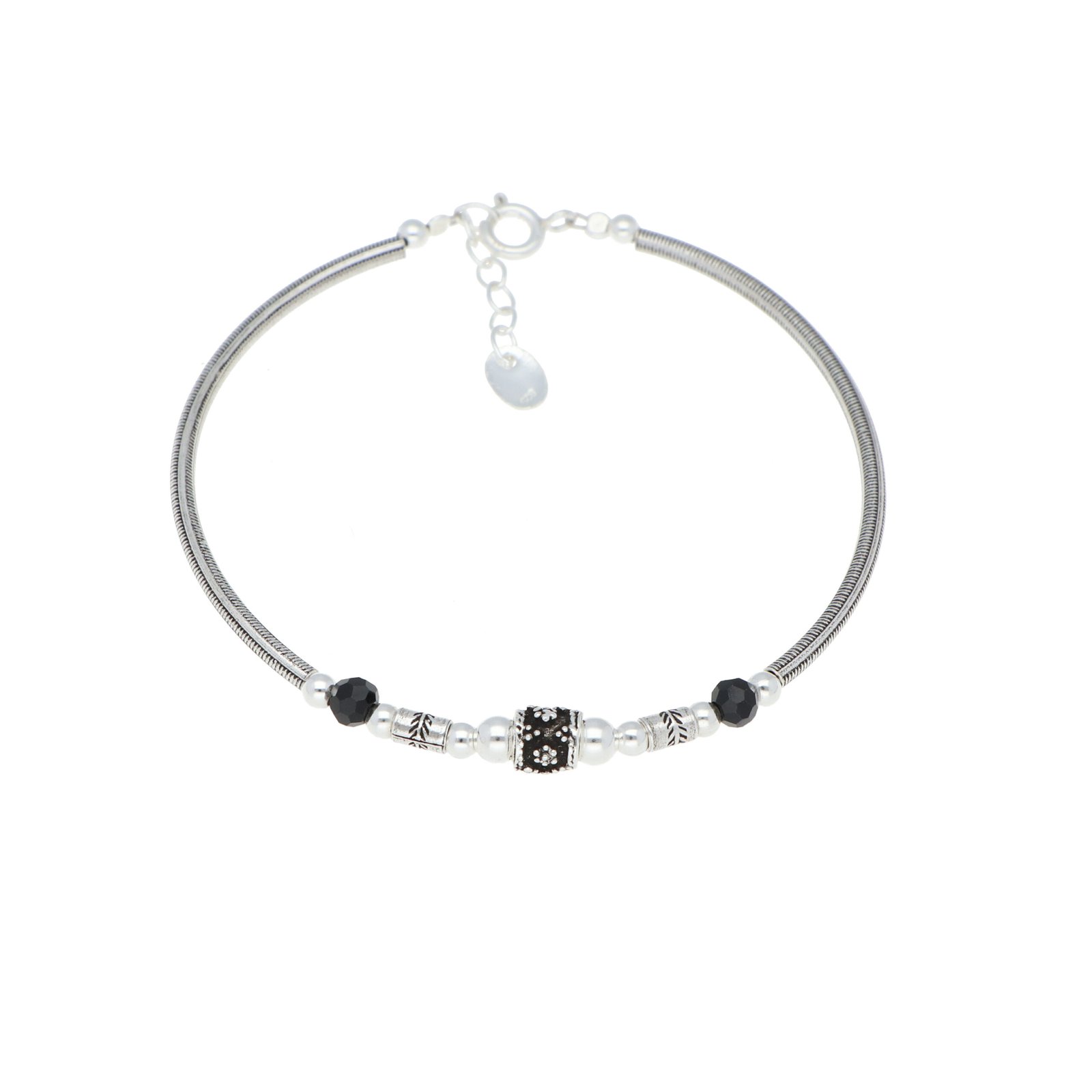 Pulsera Bali de Plata de Ley con Cristal Negro