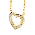 El Collar con silueta de corazón dorado grueso con circonitas es una joya verdaderamente excepcional, diseñada para aquellos que buscan distinción y elegancia en cada ocasión. Este collar se convierte en el complemento perfecto para cualquier evento y elevará tu estilo en cualquier ocasión.