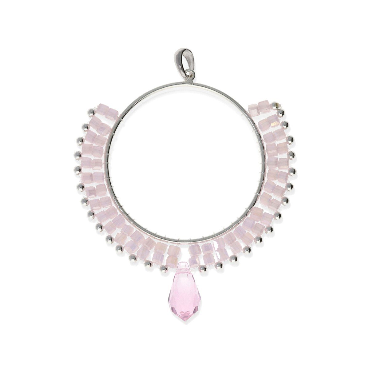 Colgante círculo de cuentas rosa de piedras y cristal