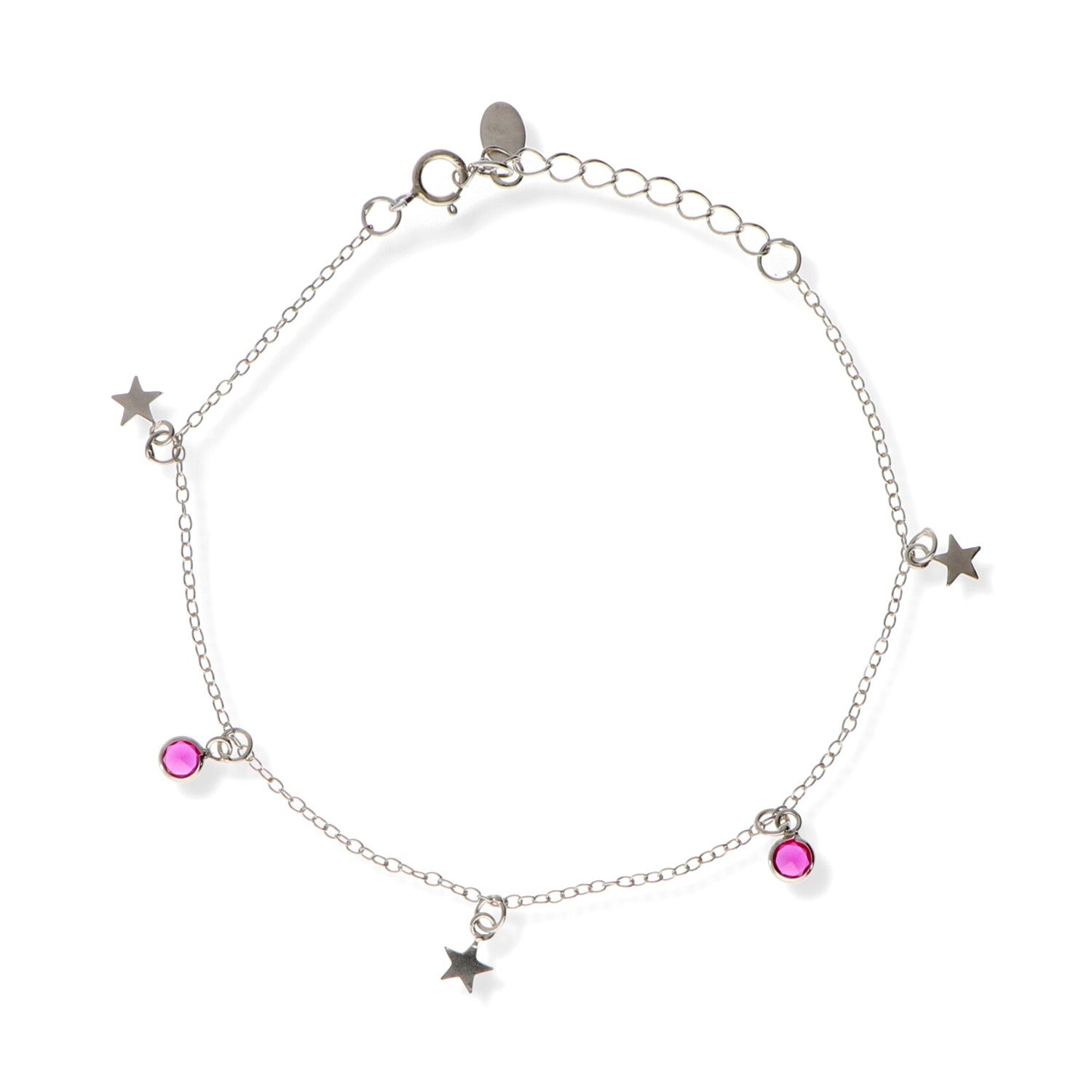 Pulsera de plata de ley 925 con circonitas fuchsias de 4mm y corazones de 4,5mm de 20cm de largo con cierre reasa en varios colores;