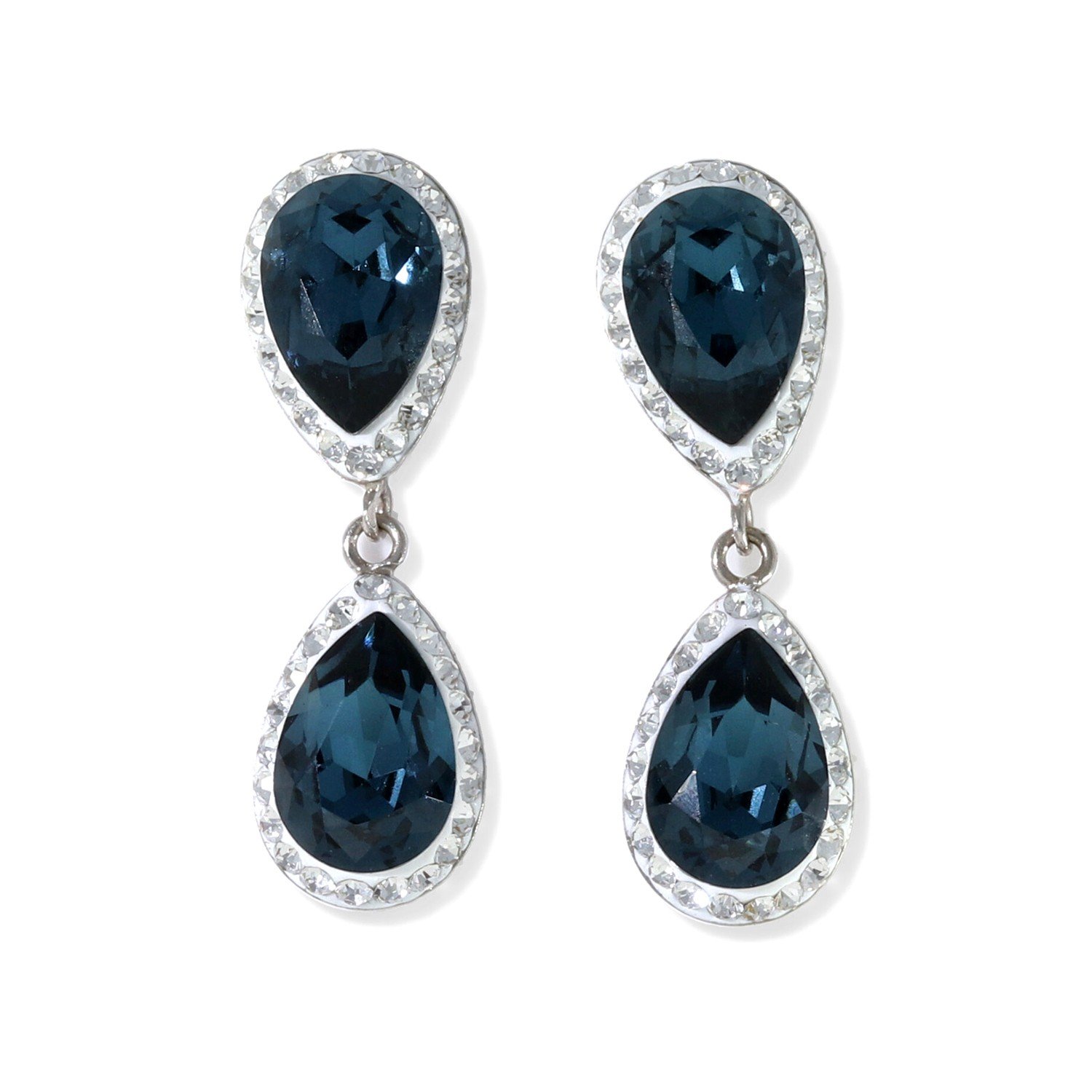 Pendientes plata de ley 925 swarovski con 2 gotas de 15mm con un perfile cristal y 28,5mm total, con cierre presión en varios colores;