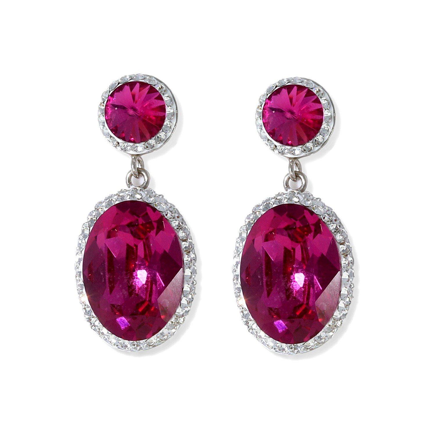 Pendientes plata de ley 925 swarovski con círculo de 8mm y colgante ovalado de 12x18mm con un perfiles cristal con cierre presión en varios colores;