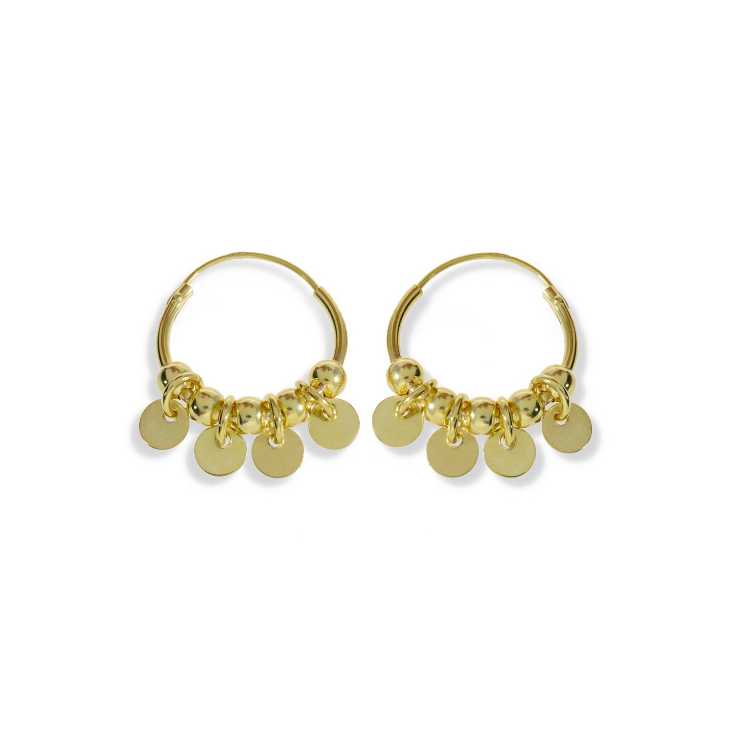 Pendientes aro con círculos y bolitas dorados