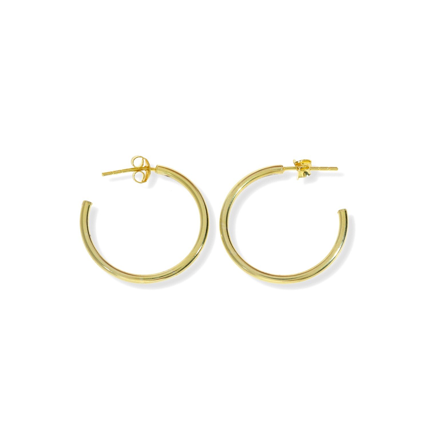 Pendientes de plata de ley 925 con baño de oro de 18 quilates con semiaro liso de 2x25mm.