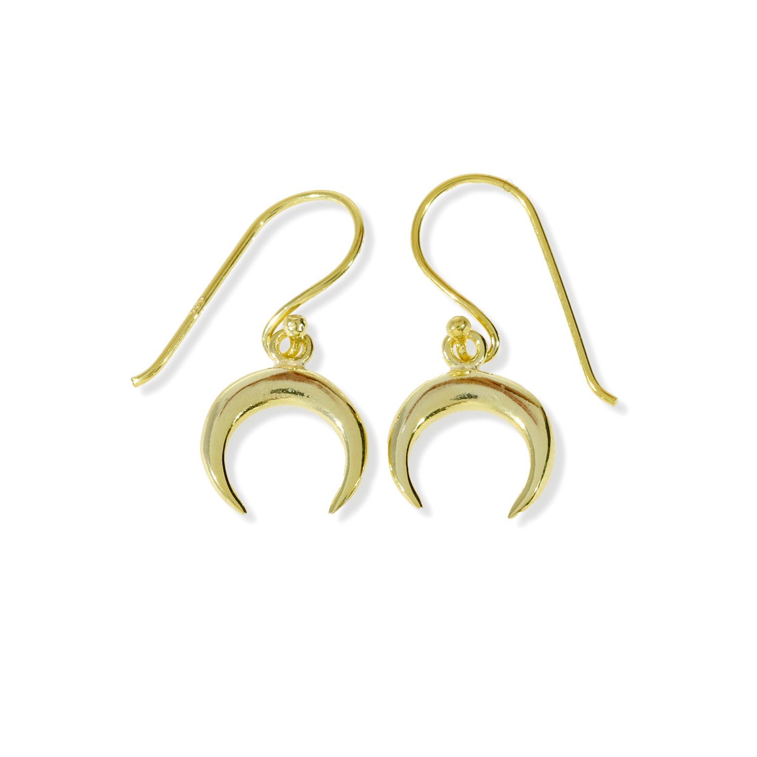 Pendientes de plata de ley 925 con baño de oro de 18 quilates con luna invertida o moonset de 11mm y cierre hippie.