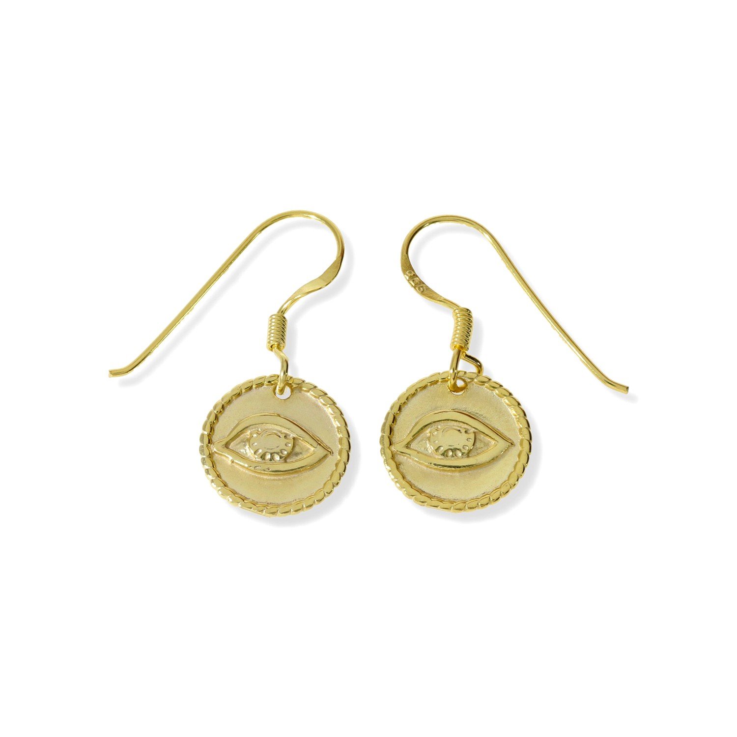 Pendientes de plata de ley 925 con baño de oro de 18 quilates con ojo 11,5mm y cierre hippie.