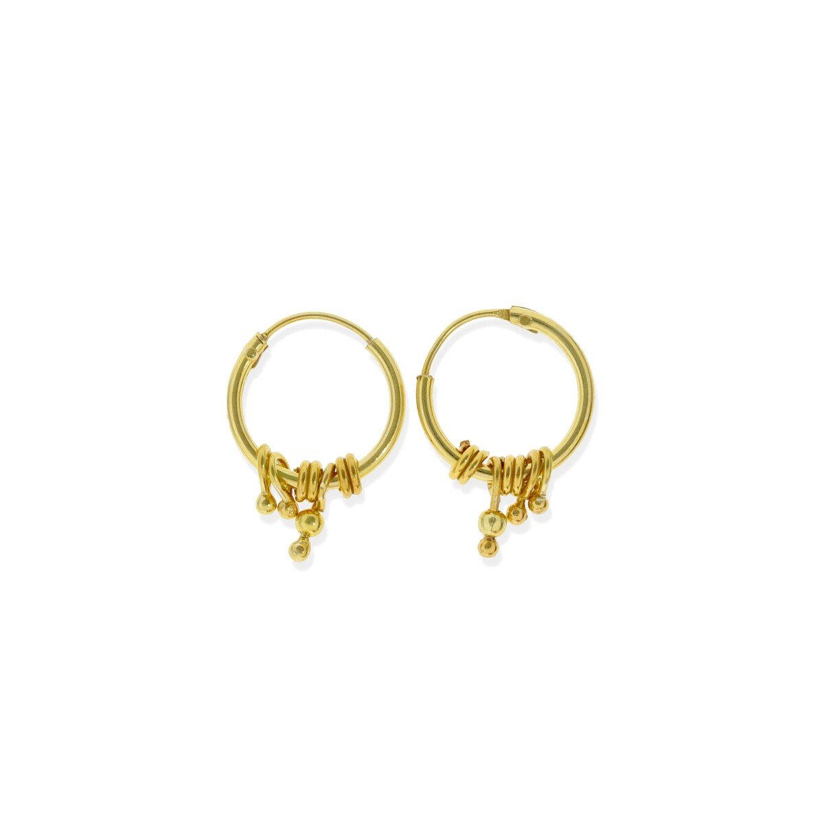 Pendientes aro con espirales y colgantes con bolitas dorados