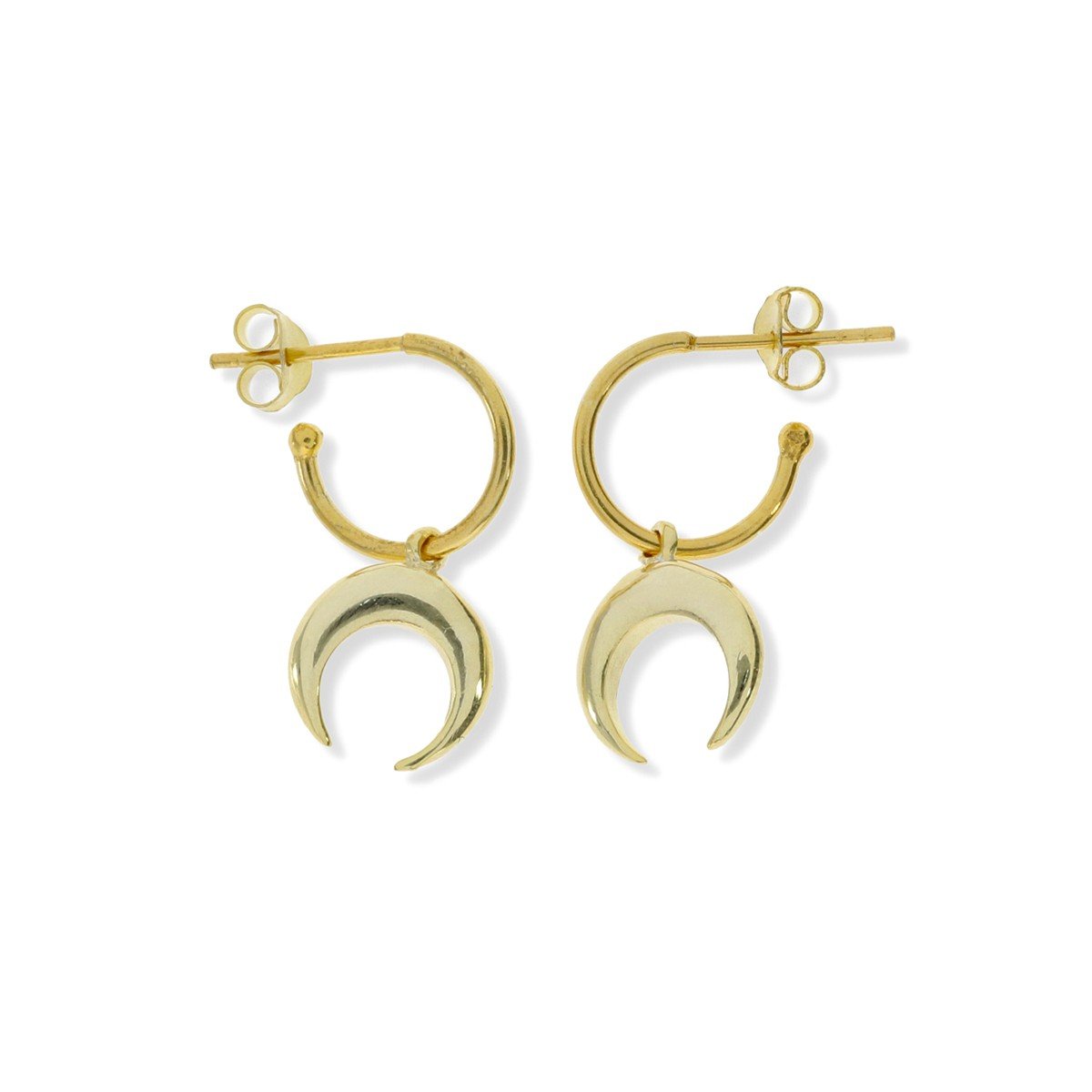 Pendientes de plata de ley 925 con baño de oro de 18 quilates con semiaro de 1,2×12,2mm y colgante de luna invertida o moonset de 11mm.