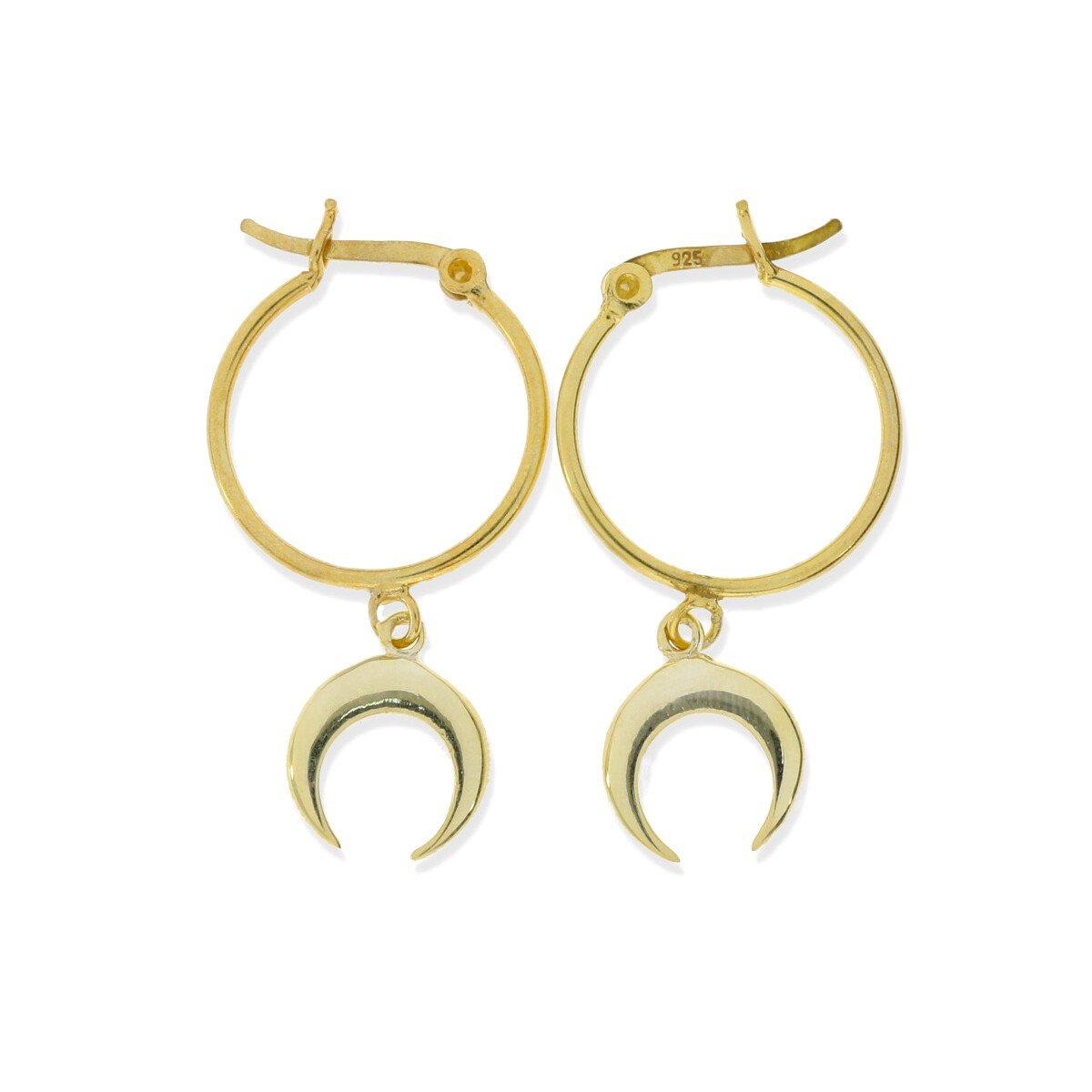 Pendientes de plata de ley 925 con baño de oro de 18 quilates con aro de 1,2×18,5mm y colgante de luna invertida o moonset de 11mm.