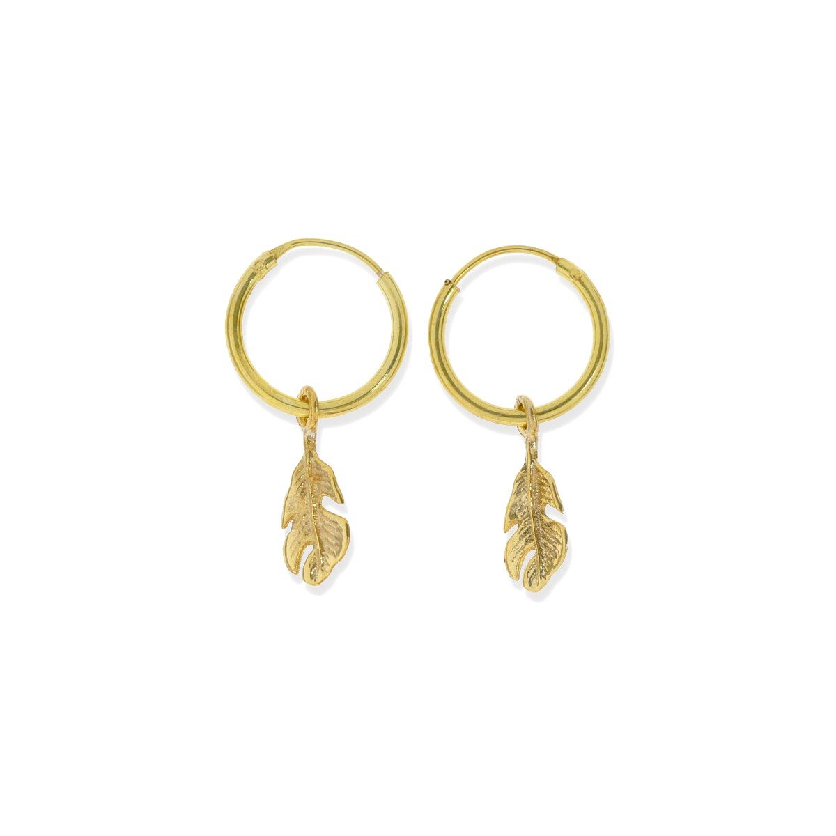 Pendientes de plata de ley 925 con baño de oro de 18 quilates con aro de 1,2×12,2mm y colgante de pluma de 13mm.