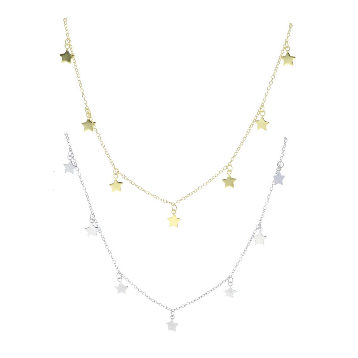 Gargantilla de estrellas en plata de ley 925 con baño de oro de 18 quilates con 7 chapitas en forma de estrella de 40 cm de largo.