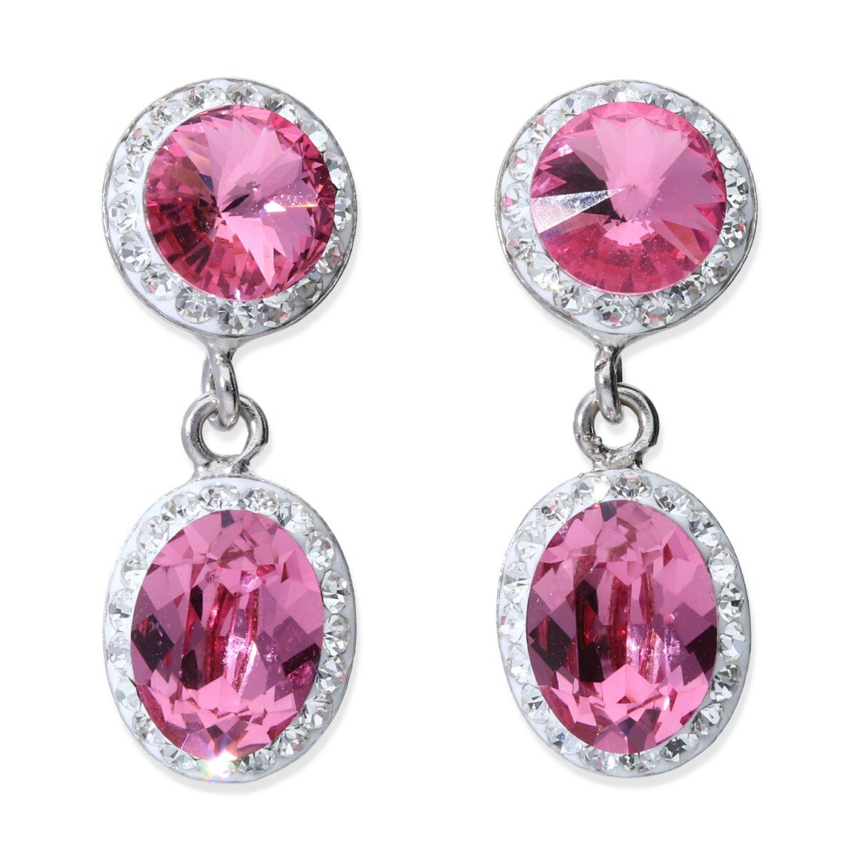 Pendientes plata de ley 925 botón y gota ovalada en swarovski en varios colores con perfil cristal y cierre a presión: (El precio indicado es por par)