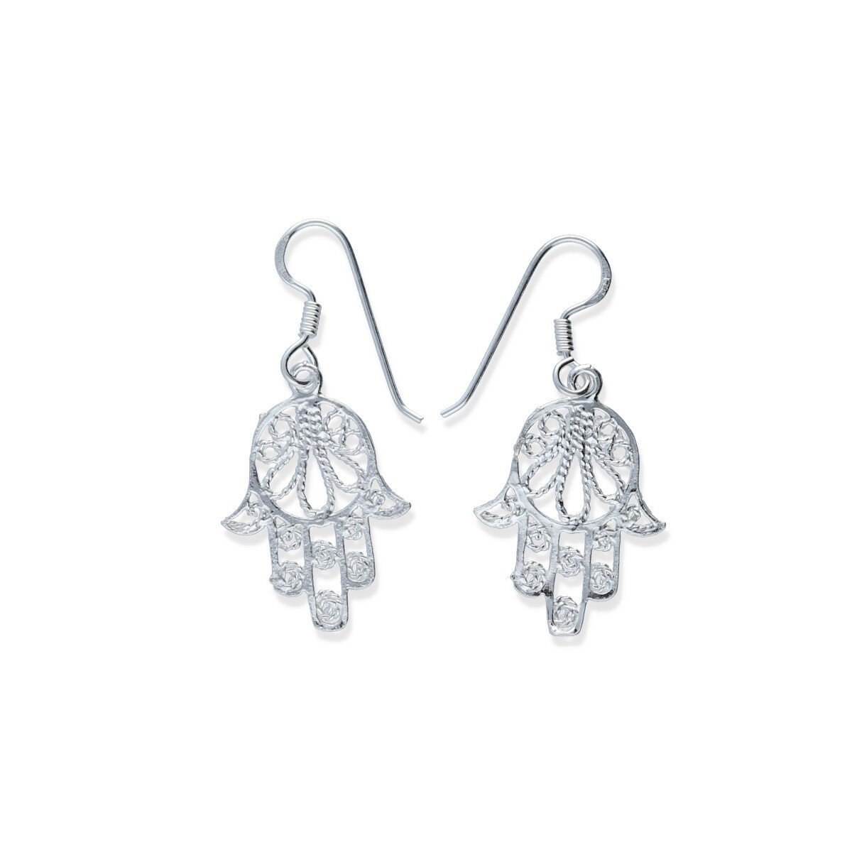 Pendientes plata de ley 925 lisa mano de Fátima de 24mm con cierre hippie.