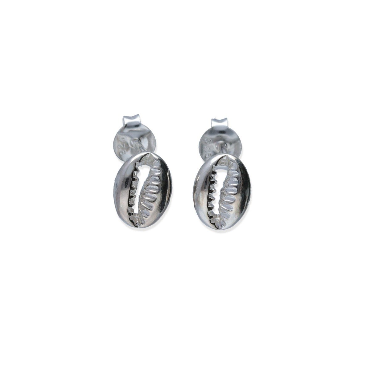 Pendientes plata de ley 925 lisa concha cauri mini de 8mm con cierre presión.