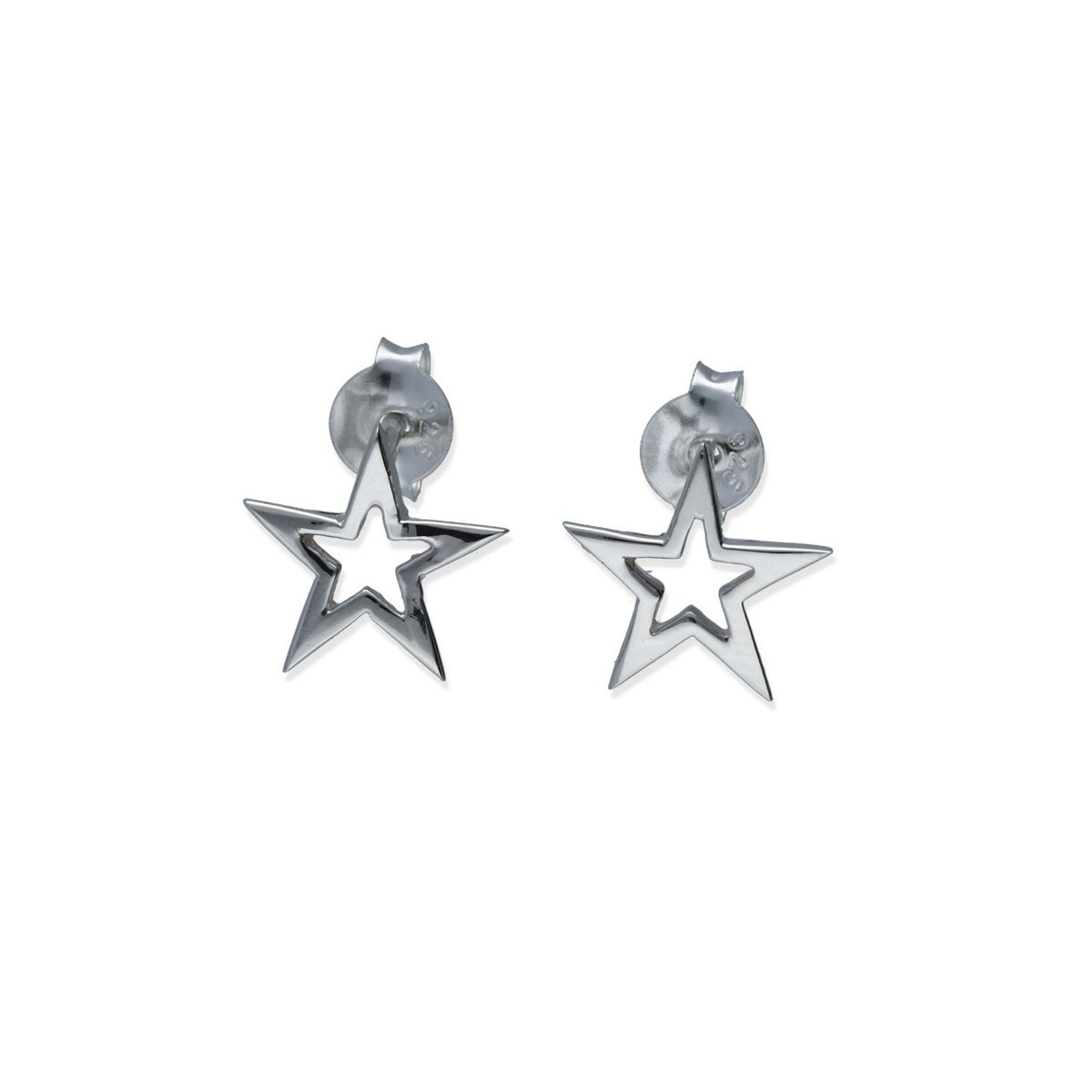 Pendientes plata de ley 925 lisa mini estrella de 9mm con cierre a presión.