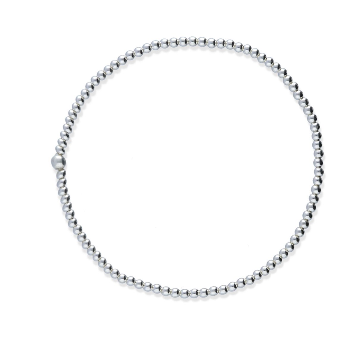 Pulsera elástica plata de ley 925 mini bolitas talla M de 5,5cm de diámetro.
