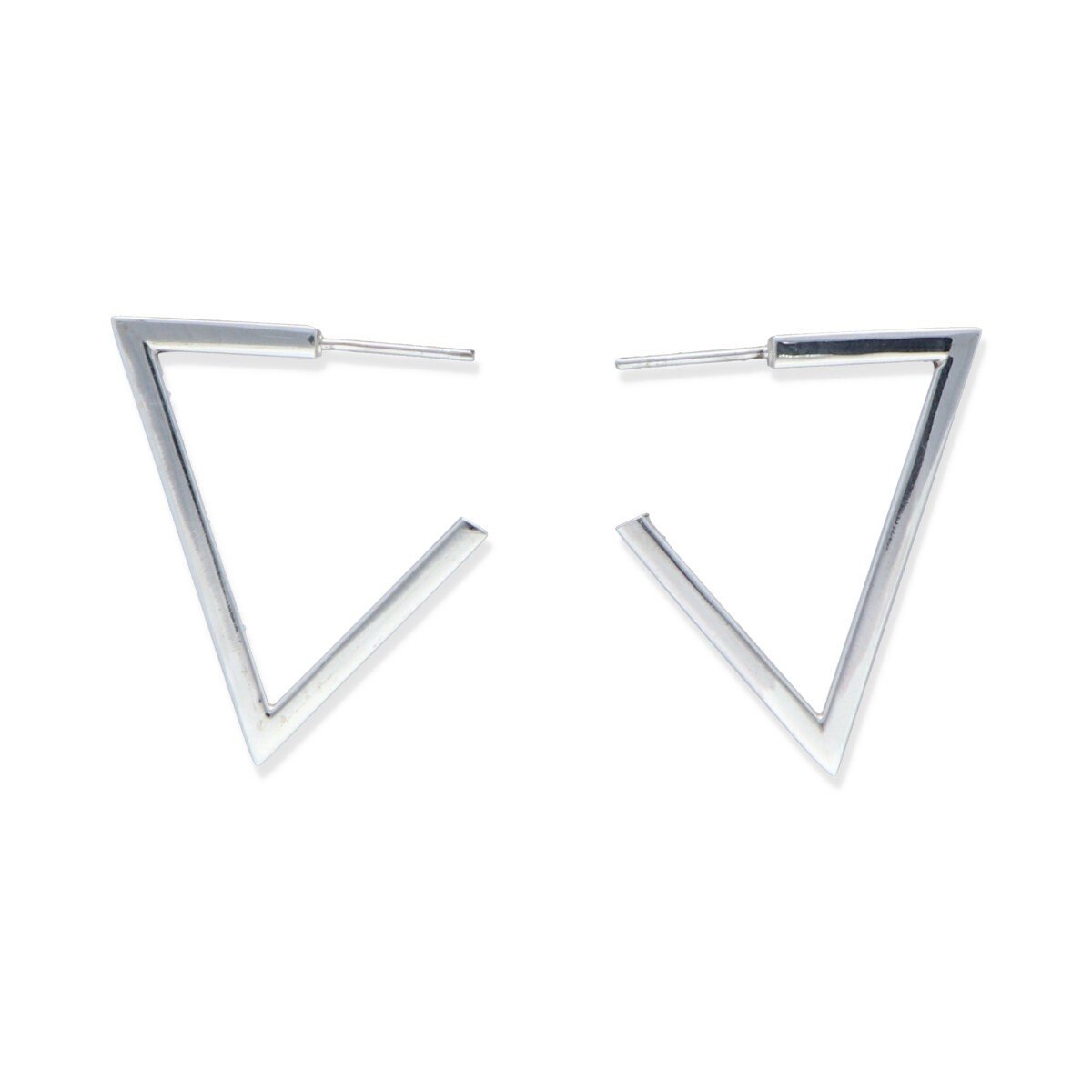 Pendientes plata de ley 925 lisa cierre presión perfil cuadrado forma triangulo de 33mm.
