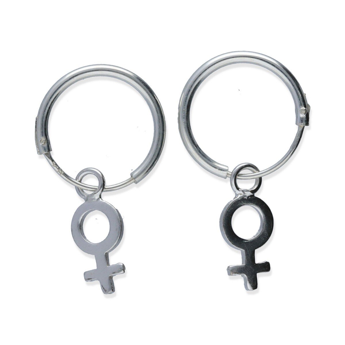Pendientes de plata de ley 925 con aro de 1,2x12mm y colgante de símbolo de la mujer 12mm.