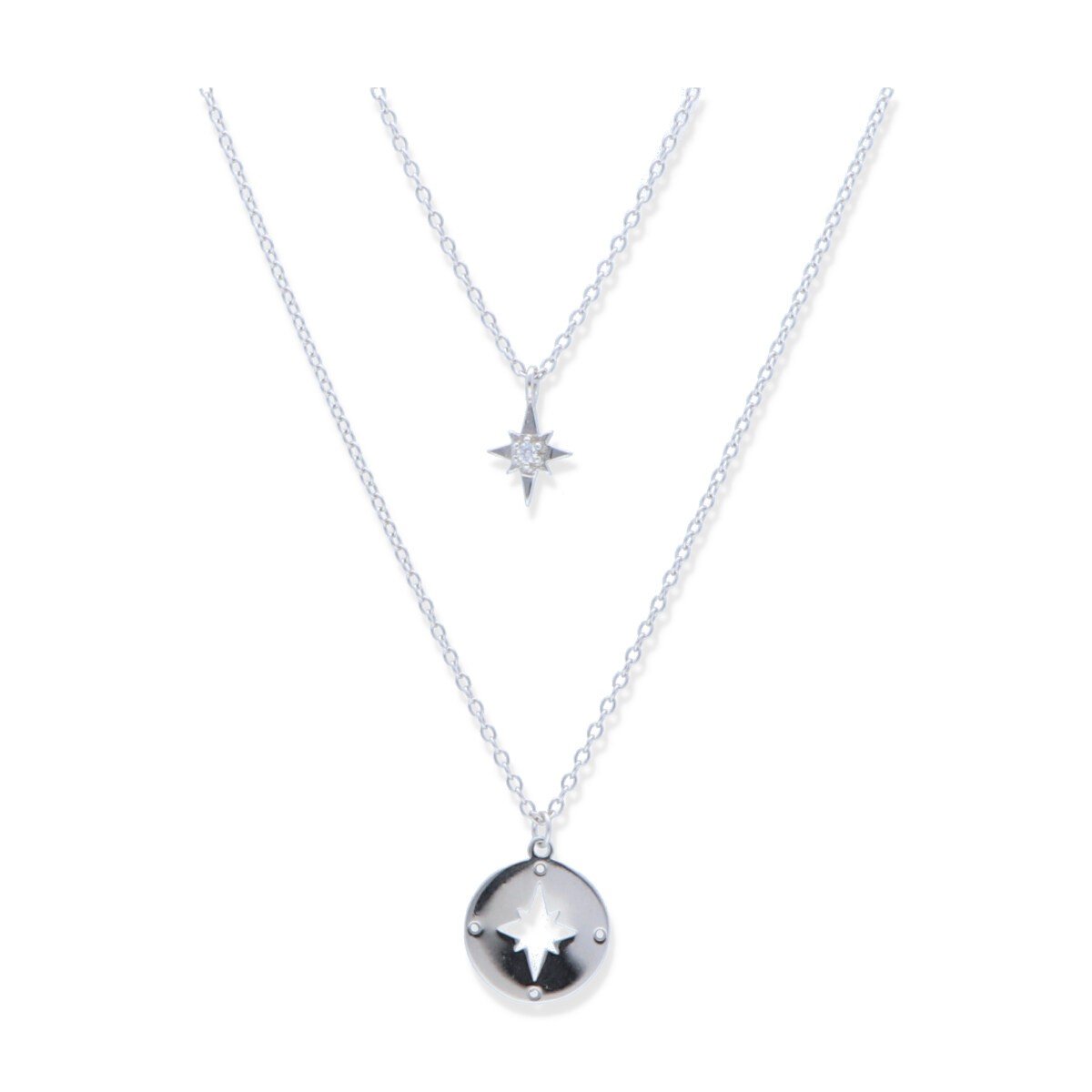 Gargantilla plata de ley 925 doble vuelta con estrella polar 7,5x12mm con circonita  y círculo 12,5mm de 44cm de largo con cierre reasa.