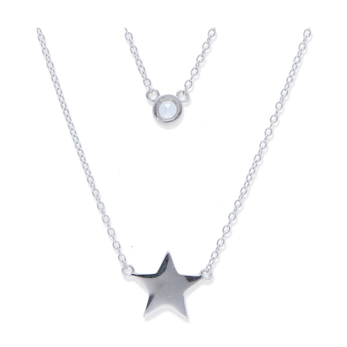 Gargantilla plata de ley 925 doble vuelta con circonita (5mm) y estrella (14mm) y 44cm de largo con cierre reasa.