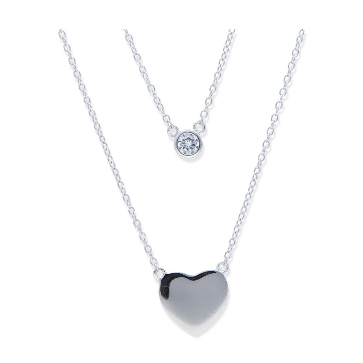 Gargantilla plata de ley 925 lisa doble vuelta con circonita (5mm) y corazón (12mm) y 44cm de largo con cierre reasa.