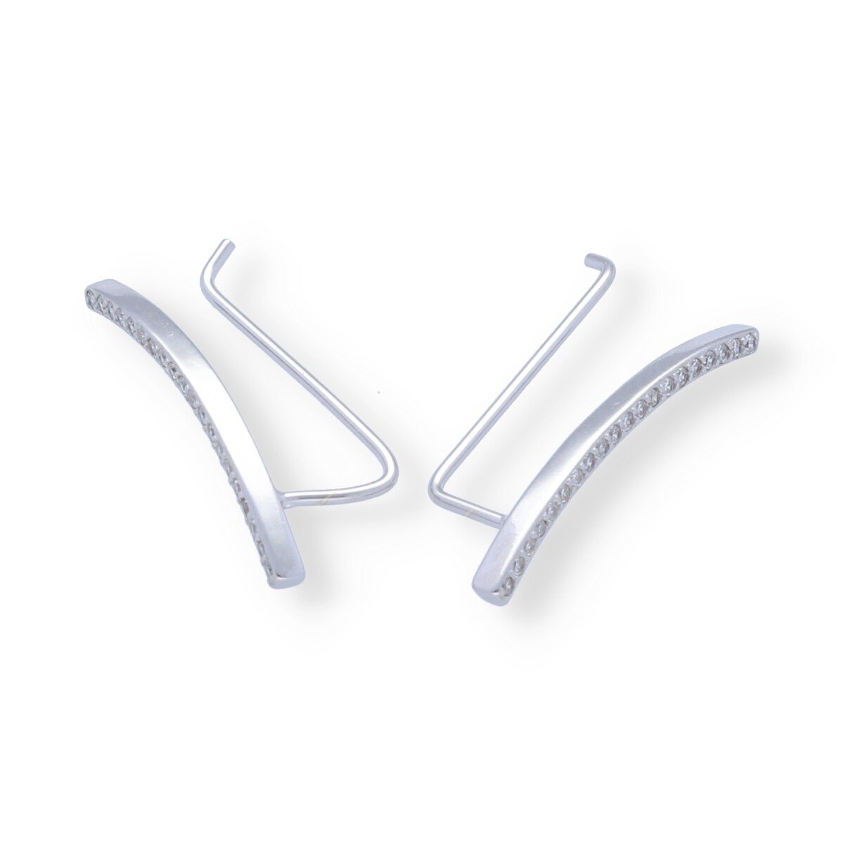 Pendientes plata de ley 925 trepadores de circonita con forma curva de 24,5mm.