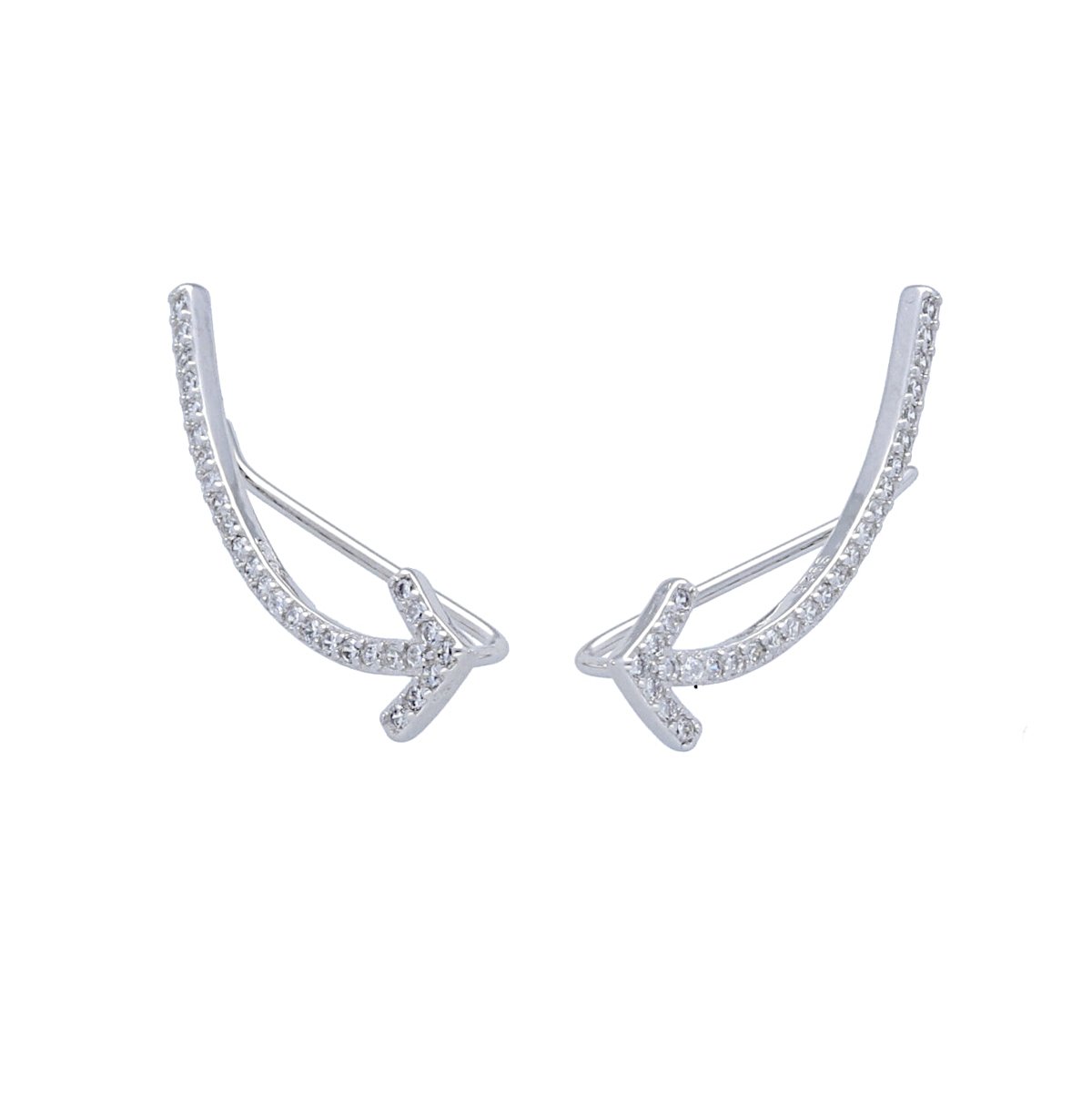 Pendiente plata de ley 925 trepadores de circonita forma flecha curva de 26mm.