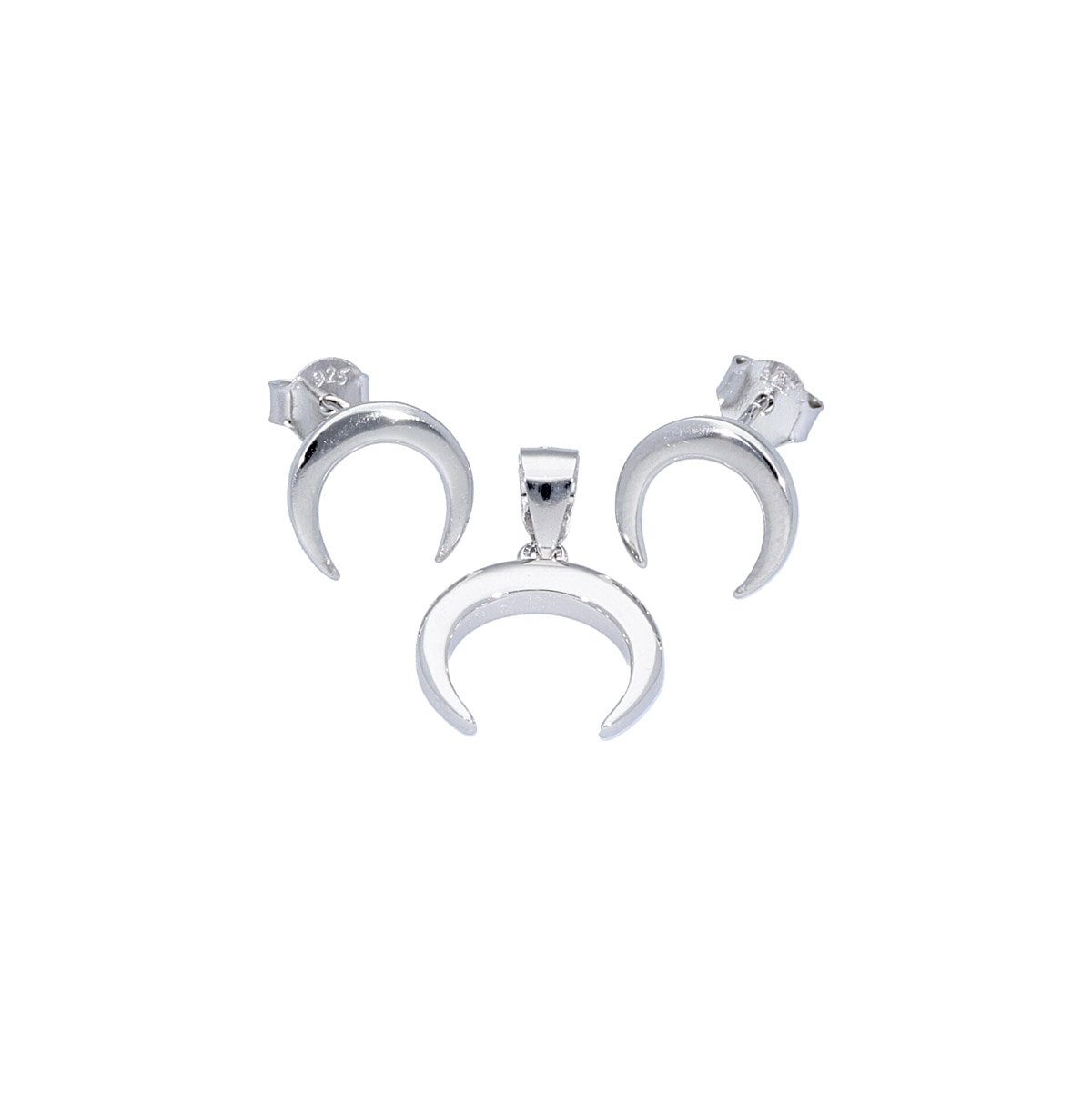 Conjunto plata de ley 925 lisa colgante de 13mm y pendiente de moonset o luna invertida de 10mm con cierre a presión.