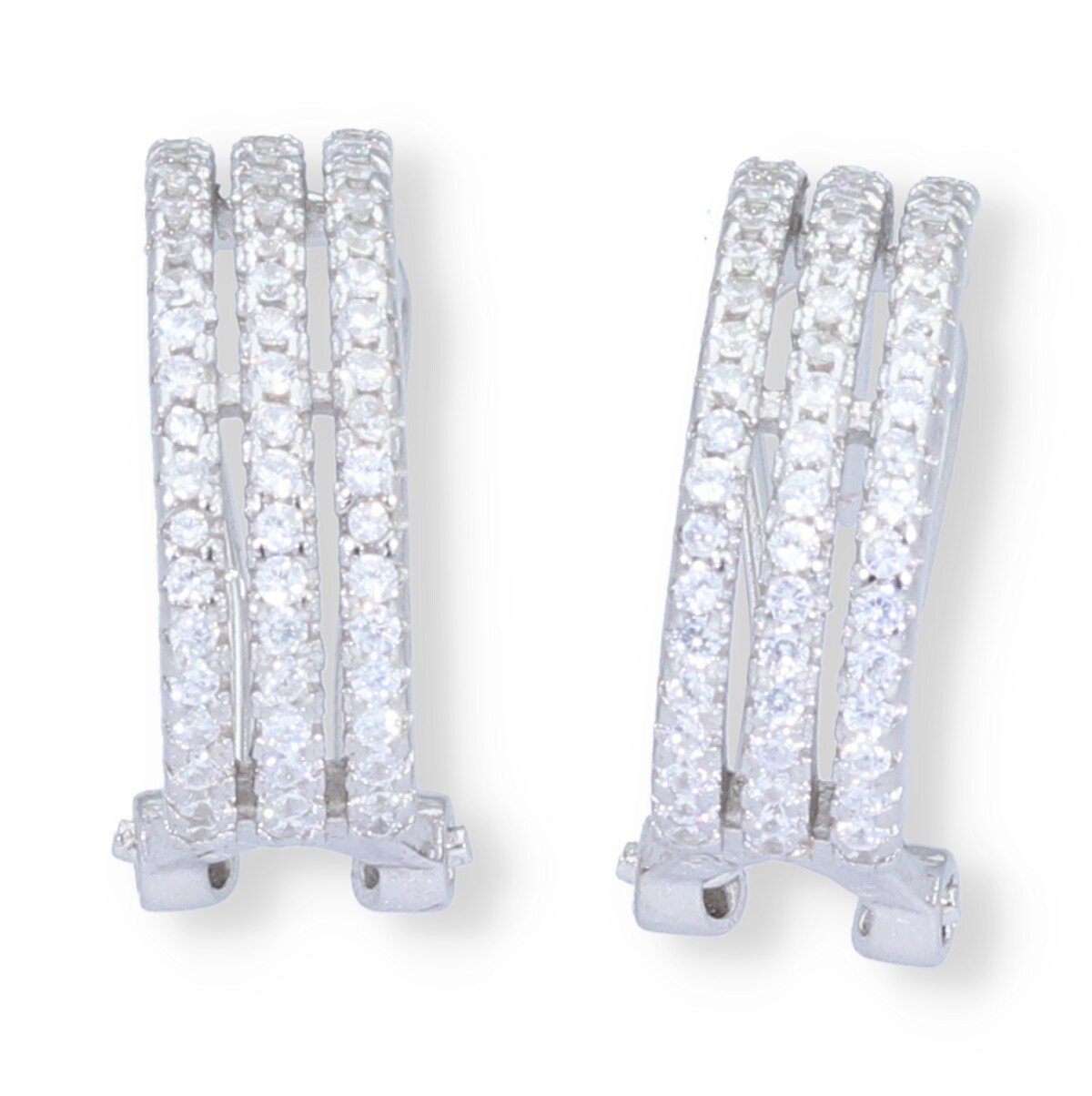 Pendientes de plata de ley 925 semiaro con tres hilos circonita 5,5×16,5mm con cierre omega.