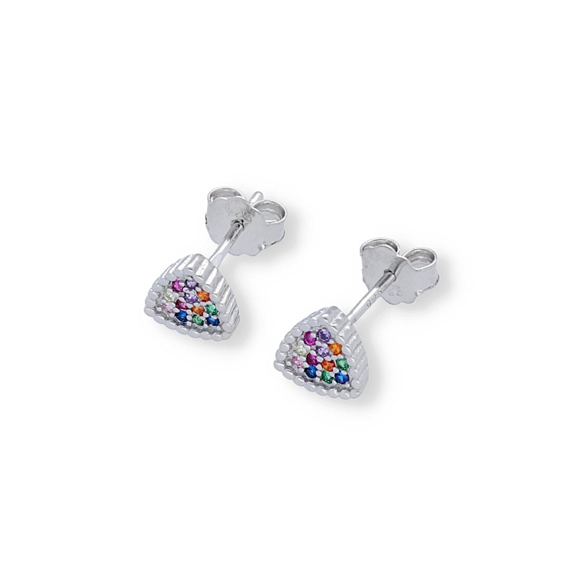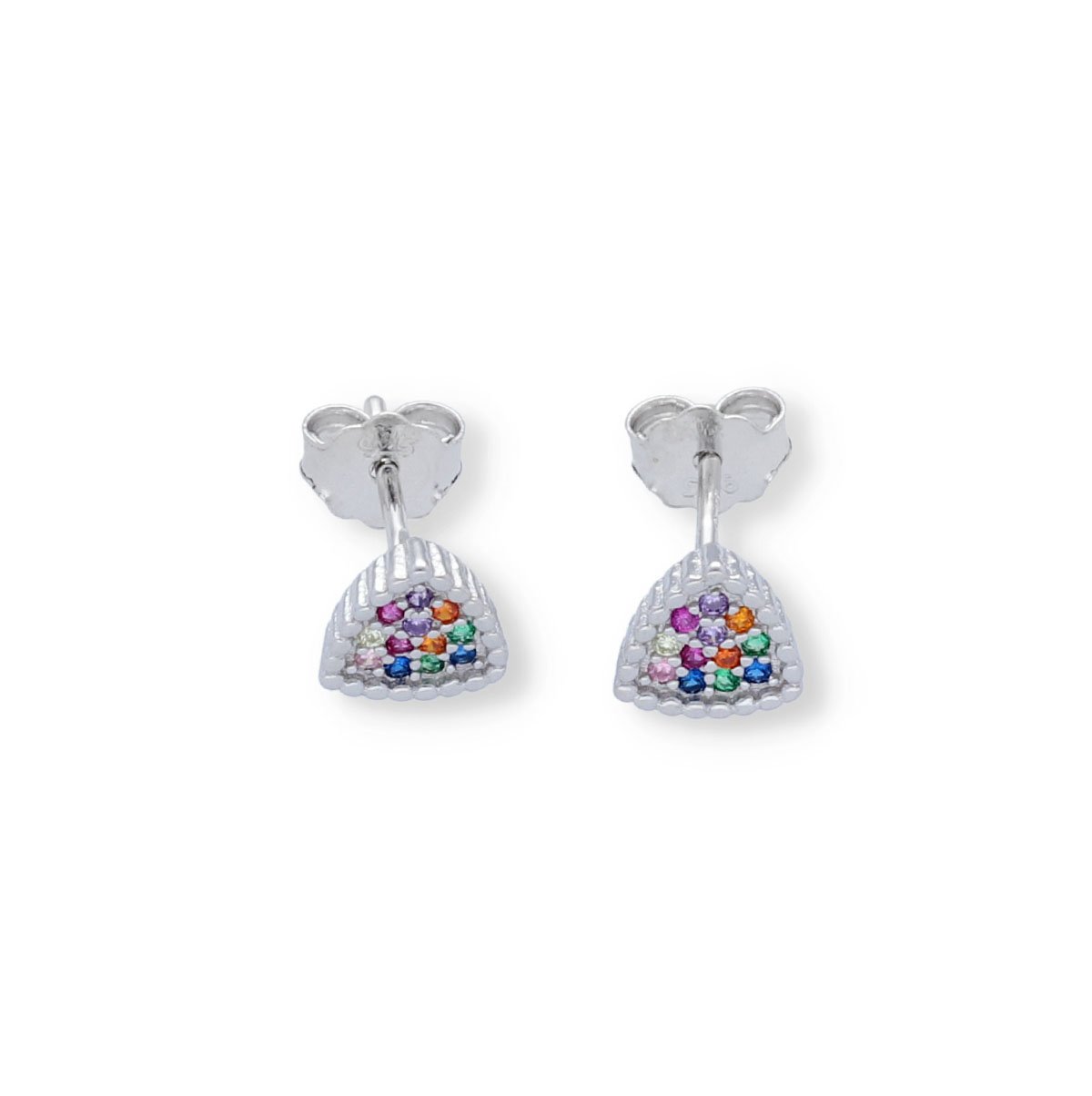 Pendientes de plata de ley 925 mini de circonitas de colores en forma de triángulo de 7mm con cierre a presión.