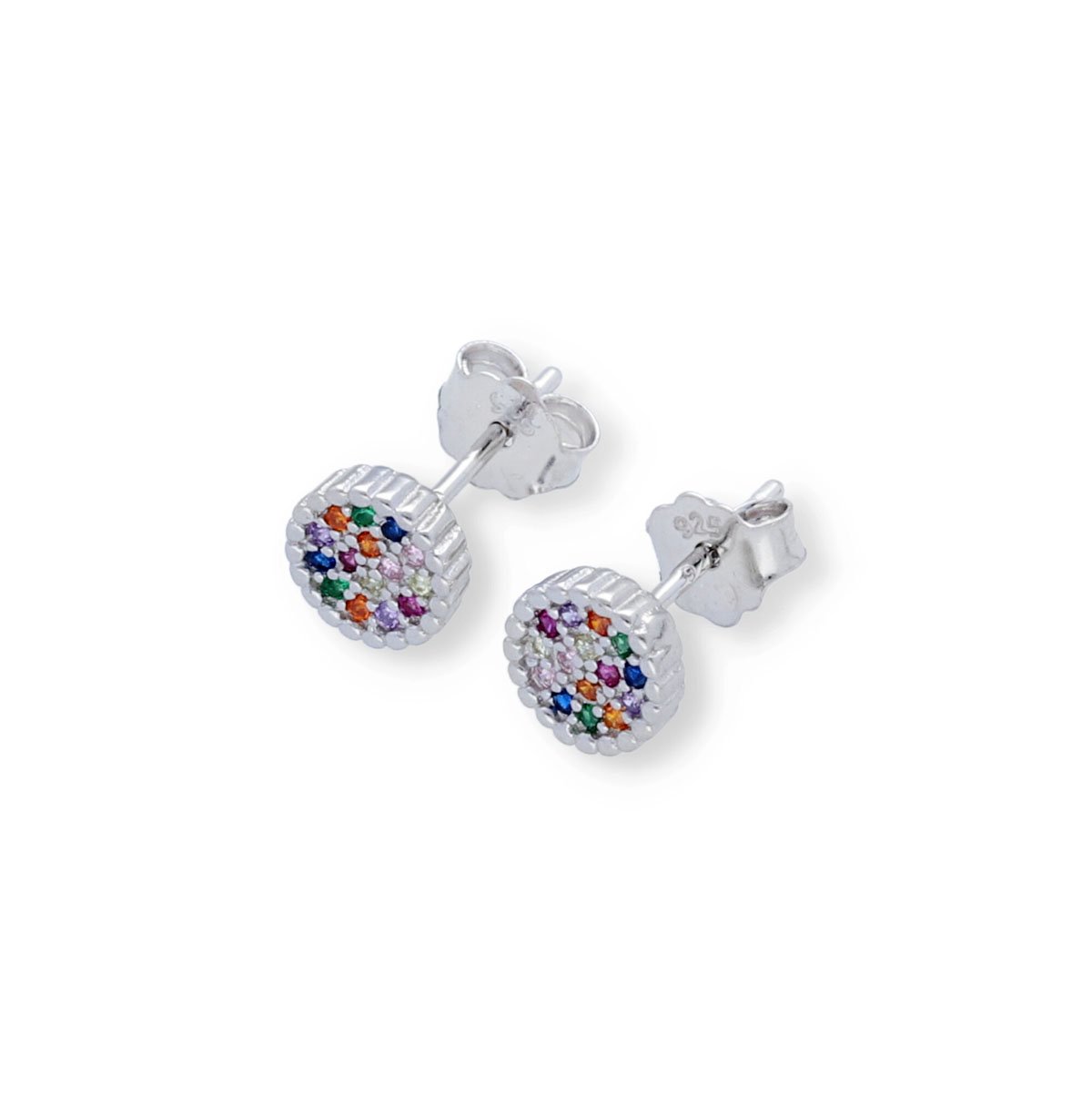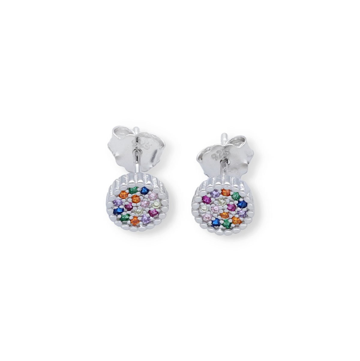 Pendientes de plata de ley 925 mini de circonitas de colores en forma de círculo de 7mm con cierre a presión.