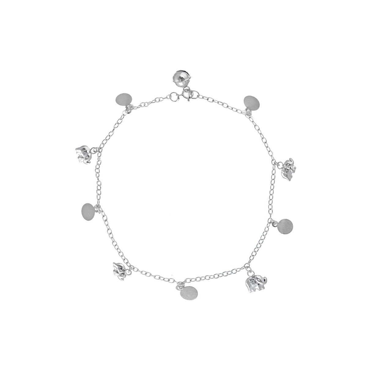 Tobillera plata de ley 925 lisa con círculos y elefantes de 25cm.